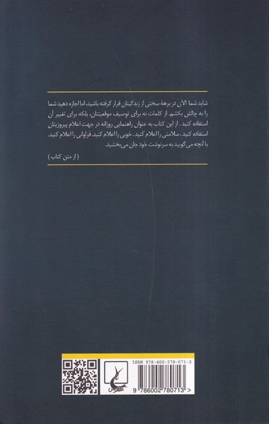 کلماتی که به کار می‌بریم از قدرتی خلاقانه برخوردارند. هرگاه واژه‌ای بر زبان می‌آوریم، چه خوب و چه بد، به آنچه می‌گوییم جان می‌دهیم. بسیاری از مردم درباره خودشان، خانواده‌شان و آینده‌شان چیزهای منفی می‌گویند. حرف‌هایی مثل «هرگز موفق نخواهم شد. این بیماری مرا از پا خواهد انداخت» و یا... شبیه این جملات منفی. این افراد نمی‌فهمند که دارند آینده‌شان را پیشگویی می‌کنند. نکته کلیدی این است که ما آنچه را می‌گوییم، به دست می‌آوریم. یعنی شما باید کلماتتان را به همان مسیری بفرستید که دوست دارید زندگی‌تان درآن مسیر پیش برود. نمی‌توانید از شکست حرف بزنید و آنگاه انتظار پیروزی داشته باشید. نمی‌توانید از کمبودها حرف زد و انتظار وفور داشت. شما همان چیزی را می‌آفرینید که می‌گویید. اگر می‌خواهید بدانید که پنج سال دیگر در چه حال خواهید بود، به آنچه درباره خودتان می‌گویید،گوش کنید. ما با کلماتمان هم می‌توانیم به آینده‌مان برکت ببخشیم و هم آن را نفرین کنیم. نویسنده کتاب «آرامش در پرتو ایمان» معتقد است به این دلیل کتاب را نوشته که خواننده بتواند به مدت یک ماه هر روز آینده خود را متبرک سازد. او آرزو می‌کند که هر روز فقط برای یک لحظه هم که شده آینده خوانندگان این کتاب با نوشته‌های مثبت و الهام بخش متبرک شود.